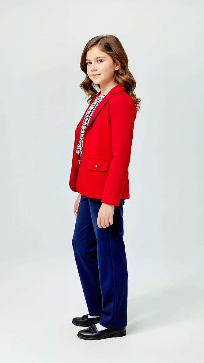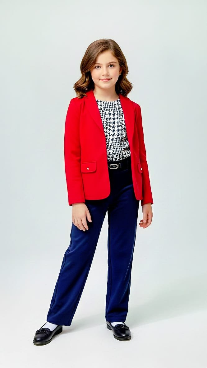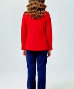 Elegant and stylish girls formal blazer set featuring a premium red blazer, printed top, and matching pants. Perfect for parties, functions, and special occasions, this outfit offers a smart look with all-day comfort and a modern fit.