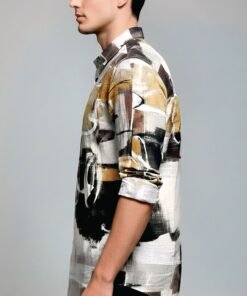Premium men’s abstract printed shirt crafted from soft, breathable fabric. Perfect for casual outings, parties, and smart everyday wear.